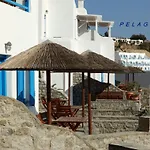 A Pelagos Studios apartman Platísz Jalósz városában van, továbbá ingyenes parkolóval, kinti úszómedencével és napozó dekkel rendelkezik. A környék népszerű helyei közé tartozik a Pszarou tengerpart, mely 150 méterre van, a Branco Mykonos pedig az ingatlan közelében található.